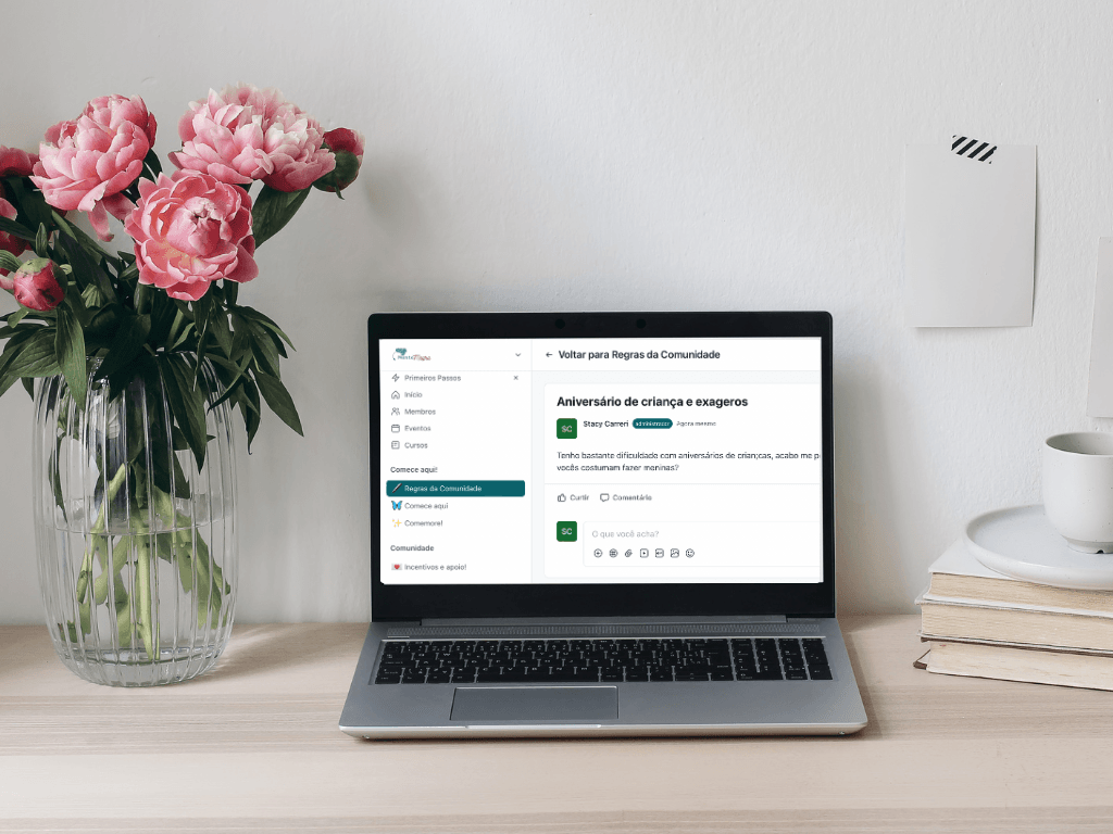 Nossa jornada sempre fica mais fácil com o apoio de outras mulheres, vivenciando os mesmos desafios que os nossos, em uma comunidade fechada exclusiva!Ter com quem contar, dividir nossas conquistas e os receios, e encontrar apoio e incentivo mútuo pode fazer toda a diferença nos seus resultados!Na nossa comunidade com fóruns de discussão, você pode tirar dúvidas com outras participantes, incentivar e acompanhar o processo delas, e pedir por inspiração e encorajamento no seu! Estamos juntas nessa!